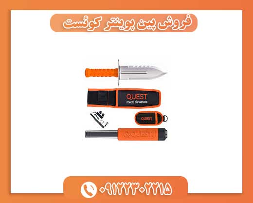 که توانایی کشف فلزات ریز را داراست. دستگاه پین پوینتر کوئست دارای تنوع مختلف از لحاظ عمق و امکانات کاوش است. از فلزیاب پین پوینتر برای یافتن اهداف ریز و همرنگ شده با خاک استفاده می گردد. پین پوینتر (Pinpointer) یکی از ابزارهای ضروری برای جستجوی فلزات است. دستگاه به صورت یک سنسور فلزی و یا یک آنتن RF کوتاه طول موج عمل میکند. در کنار دستگاه فلزیاب مورد استفاده قرار میگیرد. برای استفاده از دستگاه ابتدا باید محدودهای بزرگی را شناسایی کرده و فلز مورد نظر را در بین این محدودهها قرار دهد.